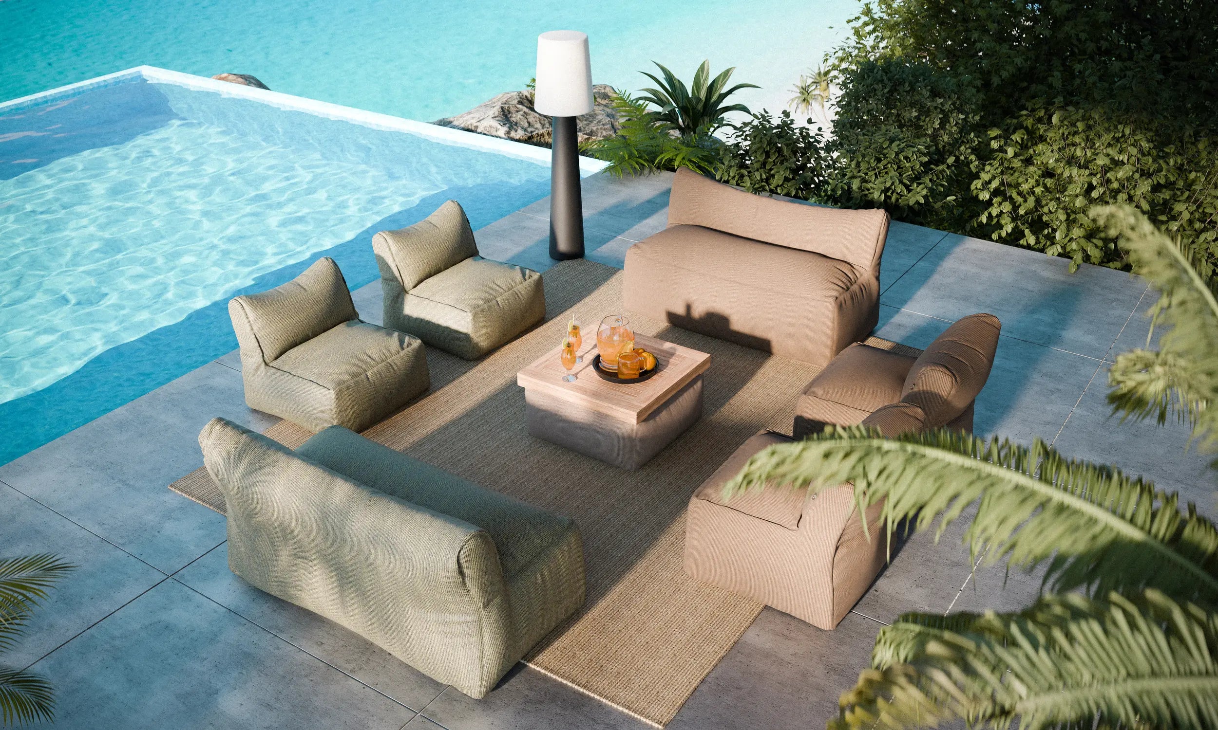 Designed for comfort, flexibility, and relaxed seating, this piece can be combined with other elements or stand alone as a striking outdoor accent.